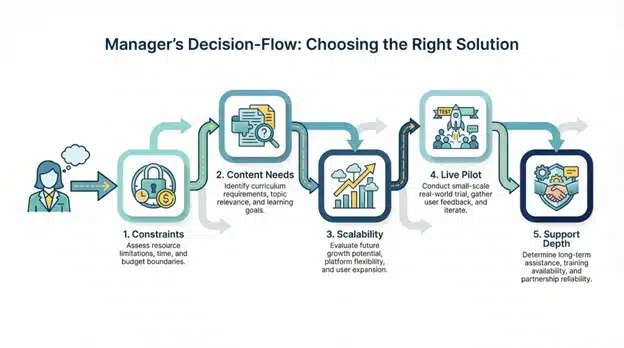 The next thing that you should not do is to select the LMS that is ranked at the top but that eliminates the biggest limitation that you have. Pilot, engage actual managers, and quantify adoption and sign a long-term contract. Do it, and your LMS is not a training tool any more, it is a leadership engine, which will expand along with your business.